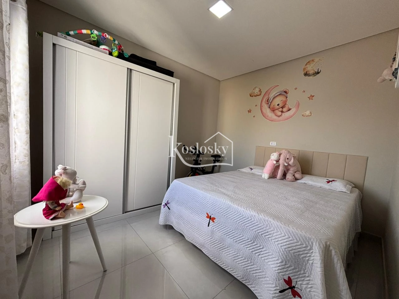 No pavimento superior estão 3 quartos, sendo 1 suíte. Os espaços são amplos e bem iluminados.